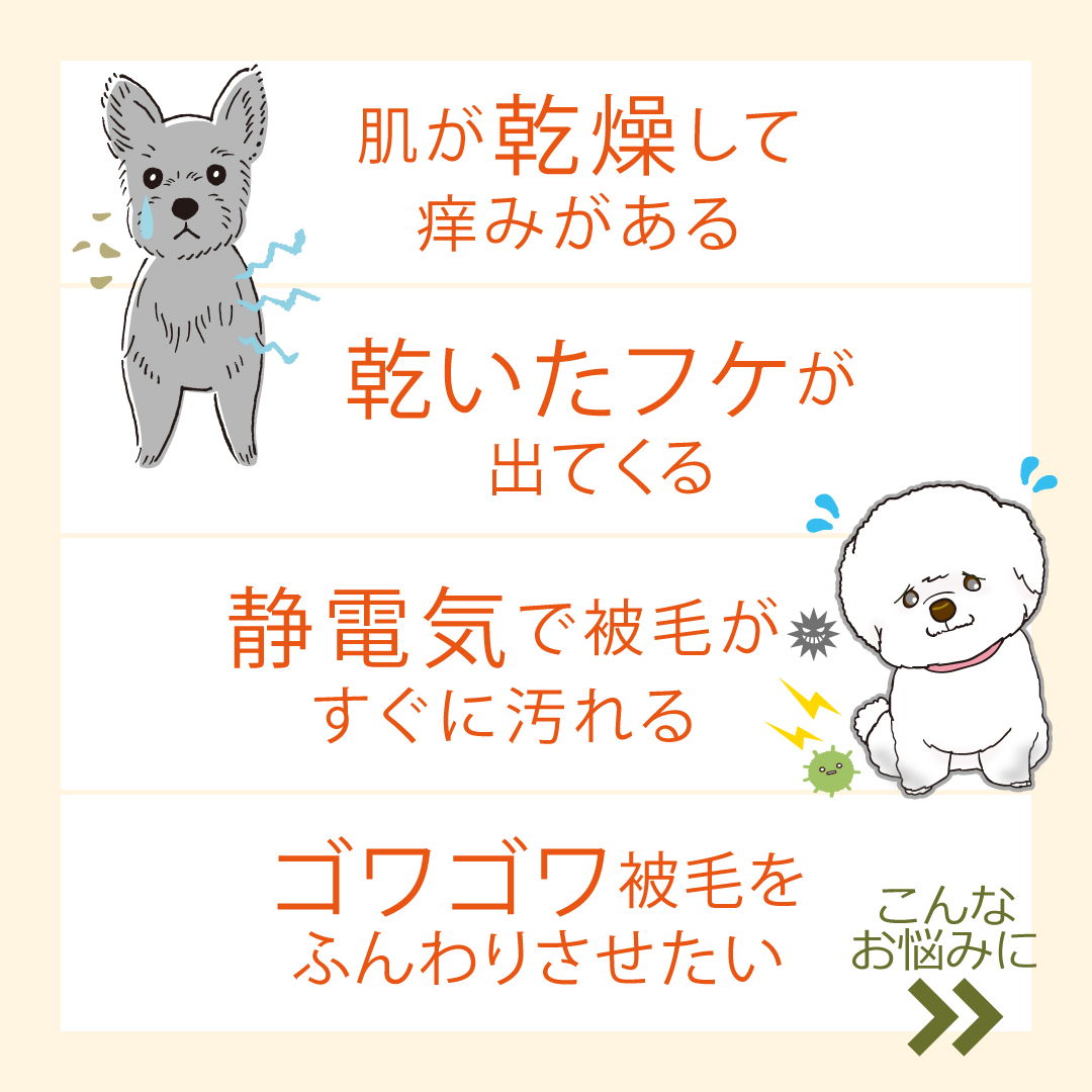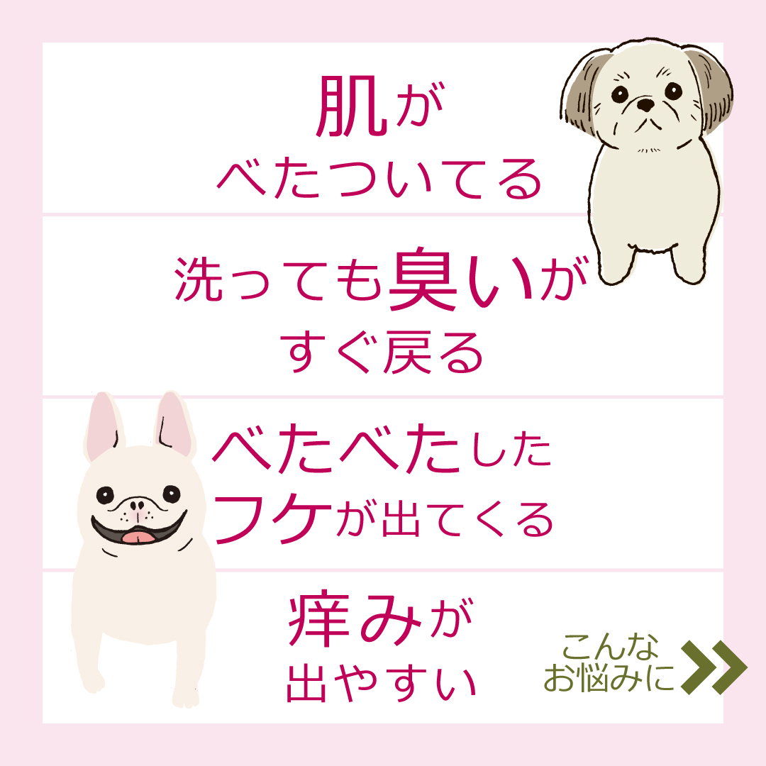 様々なシャンプー各種取り揃えております。 敏感肌のわんちゃんもご利用いただける低刺激シャンプーもございます。